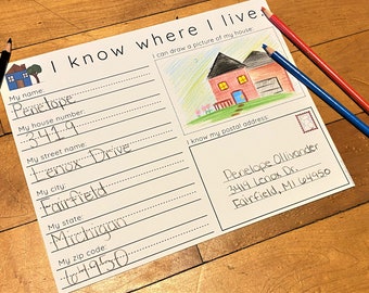 Where I Live Printable Activity Sheet, Learning Address Download, Kids Journal Pages, Kindergarten Educational Writing, Envelope Practice